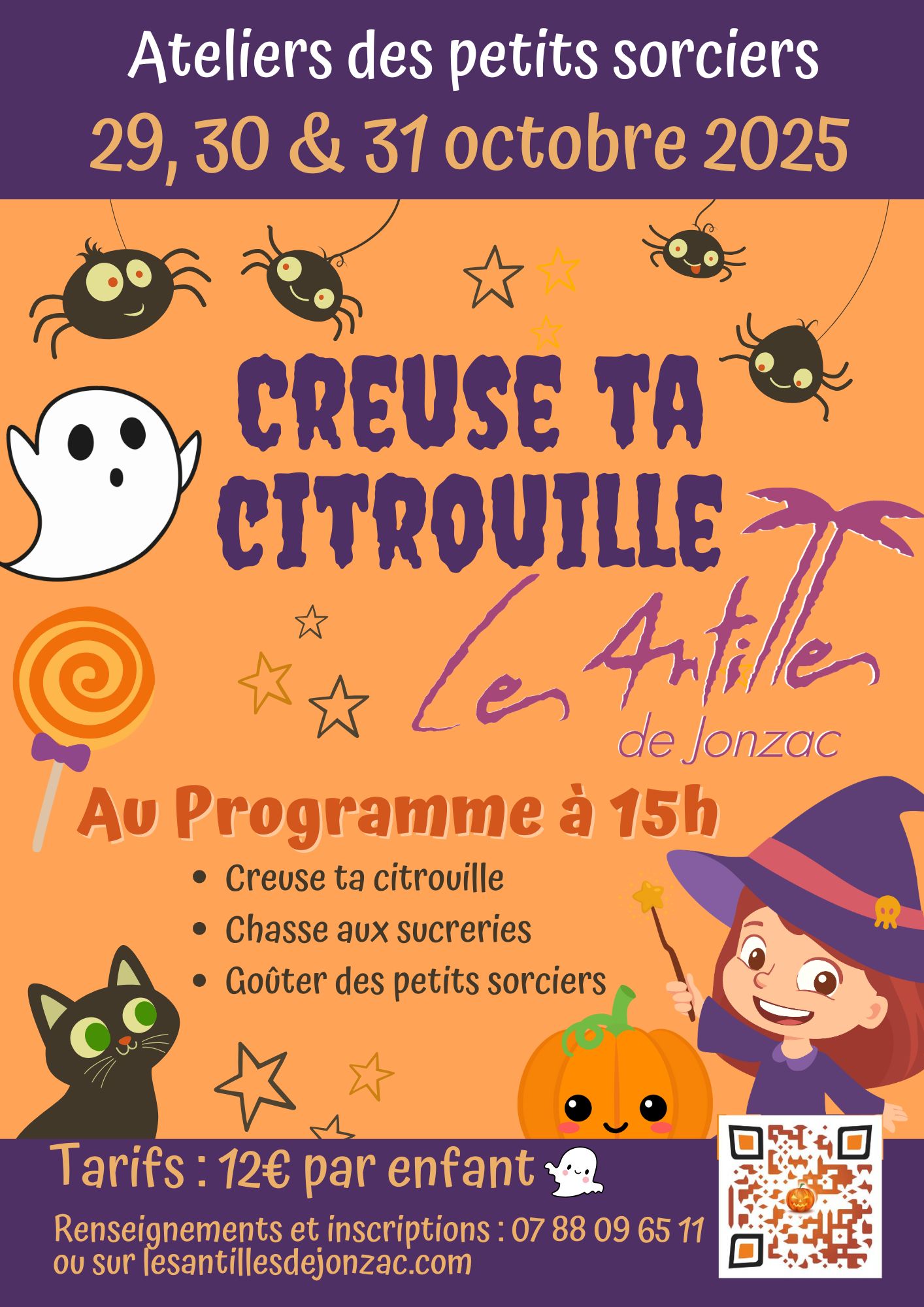 Ateliers des petits sorciers, le 29, 30 et 31 octobre 2025 aux Antilles de Jonzac.
